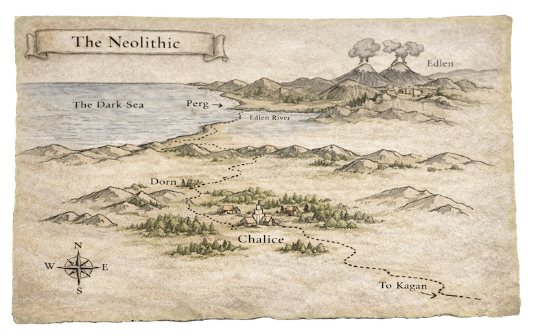 The novel's fictional settlements — Chalice, Dorn, Edlen — are not recreations of any specific site. They are imaginative extrapolations. The novel asks: what if the tools we associate with civilization emerged from partnership rather than hierarchy? What if steel was forged to defend peace? What if writing was invented by a woman who wanted to preserve her people's stories rather than by a bureaucrat tracking grain for a king?